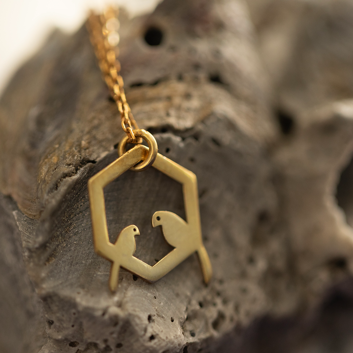 گردنبند نقره ایتالیایی طرح مرغ عشق (روکش طلا)
