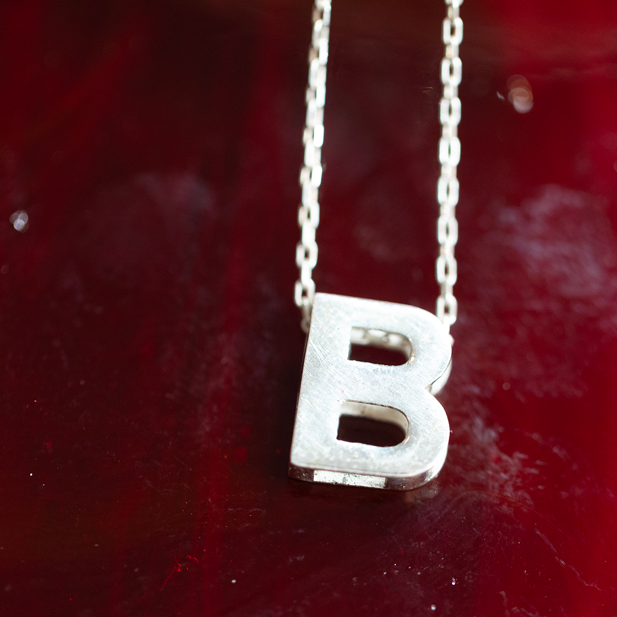 گردنبند نقره ایتالیایی طرح حرف "B" کد 03