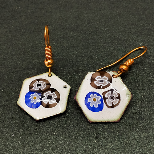 گوشواره میناکاری شده (مینای گرم) طرح " دفرمگی "
